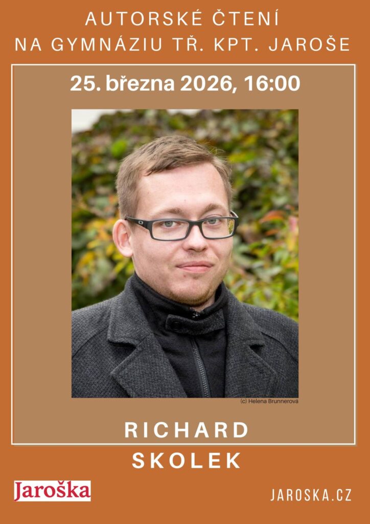 Jaroška se zapojila do projektu autorských čtení, která proběhnou na brněnských středních školách od 25. 2. do 25. 3. 2026. Akci již několik let organizuje Gymnázium Elgartova pod vedením Mgr. Jana Křečka, Ph.D., a letos poprvé se na ní budeme podílet i my. Na každé ze sedmi zaangažovaných škol se setkáme s jedním nebo dvěma autory a s ukázkou z vlastní tvorby vystoupí také studenti. Na Jarošce Vás rádi přivítáme ve středu 25. 3. v 16.00 hod. Ze svých knih bude číst Richard Skolek, náš absolvent z roku 2007. Máte-li rádi literaturu, přijďte si poslechnout nejenom Richarda Skolka, nýbrž i autory pozvané na jiné školy. Vstup je zdarma a školy budou otevřené veřejnosti 🙂